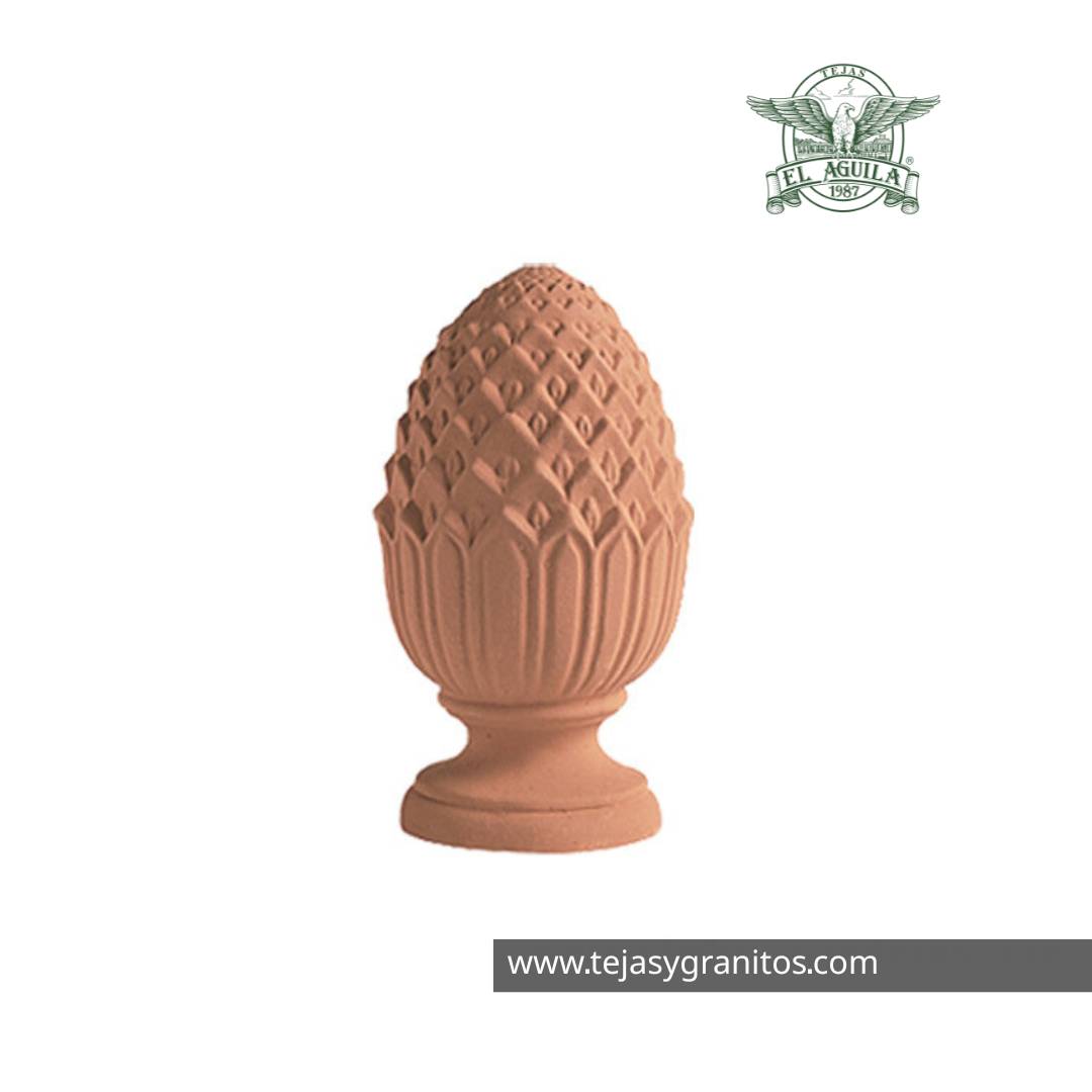 - La Piña Renacimiento es de barro extruido y prensado, color barro-terracota.