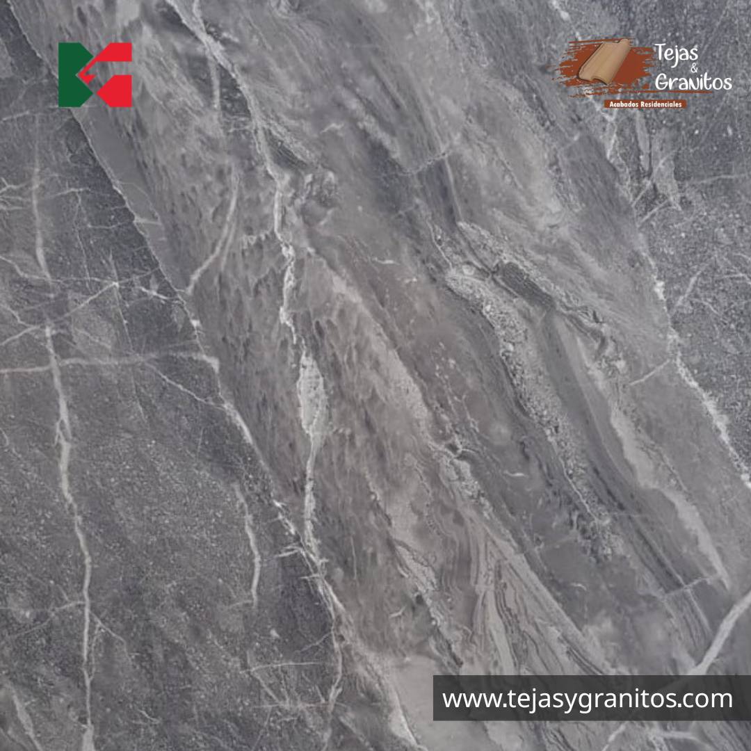 - Su color es gris con vetas blancas tipo Mármol (según la imagen).