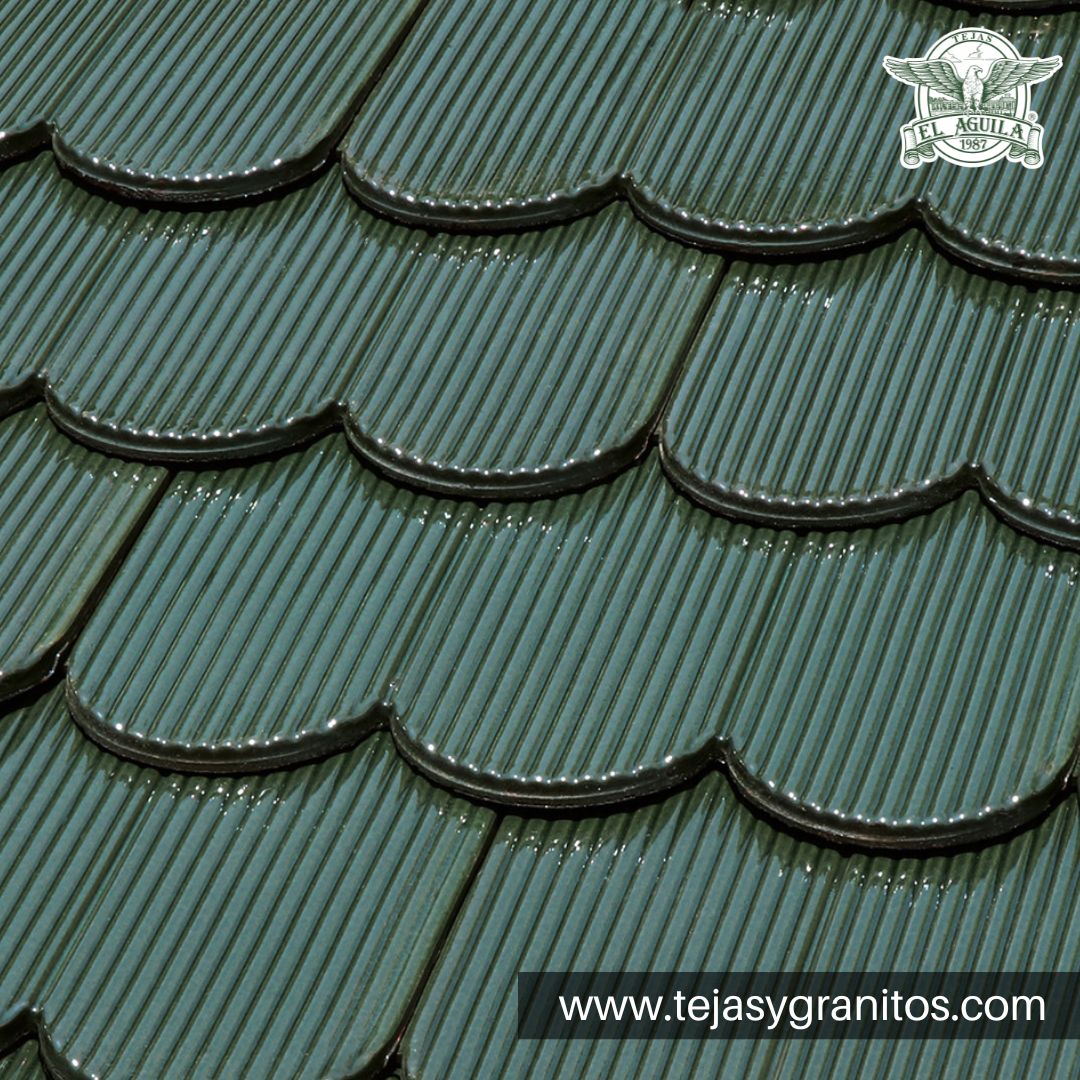 La Teja el Aguila modelo Francesa Rayada Verde Botella o tambien conocida como Teja Baviera es una teja de alto formato, cuya dimensión es 48 x 30cm. (Medida nominales). Es una teja plana con sistema de interlocking facilitando su instalación, estabilidad y permanencia en el techo, así como su rendimiento exacto.