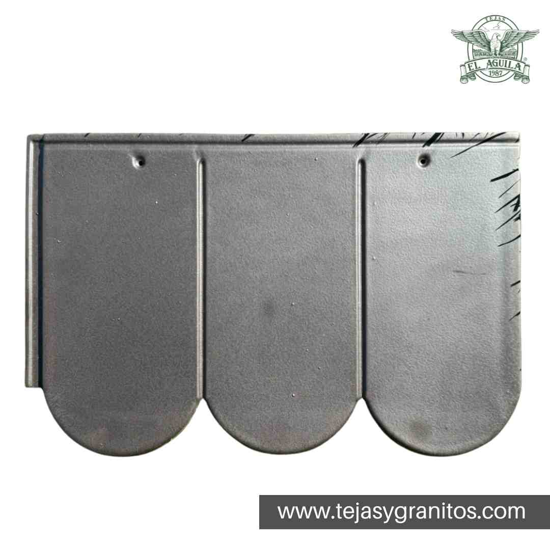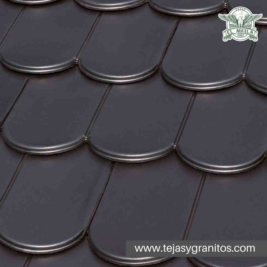 La Teja el Aguila modelo Francesa Negro Baquelita o tambien conocida como Teja Baviera es una teja de alto formato, cuya dimensión es 48 x 30cm. (Medida nominales). Es una teja plana con sistema de interlocking facilitando suinstalación, estabilidad y permanencia en el techo, así como su rendimiento exacto.