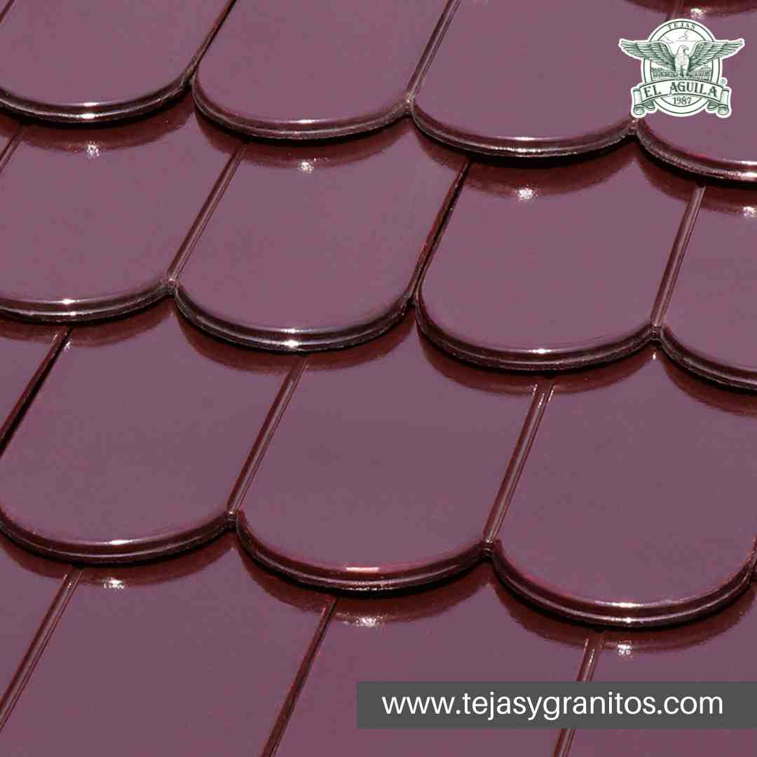 - La Teja Plana Francesa Esmalte Granada es de barro extruido y prensado, tiene aplicación de esmalte brillante color granada.