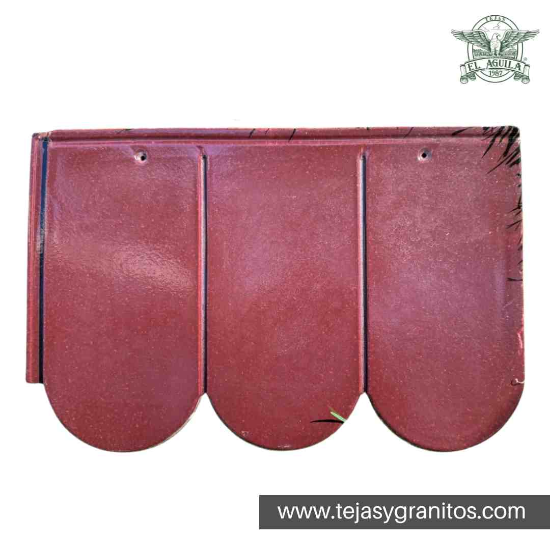 La Teja el Aguila modelo Francesa Esmalte Granada o tambien conocida como Teja Baviera es una teja de alto formato, cuya dimensión es 48 x 30cm. (Medida nominales). Es una teja plana con sistema de interlocking facilitando suinstalación, estabilidad y permanencia en el techo, así como su rendimiento exacto.